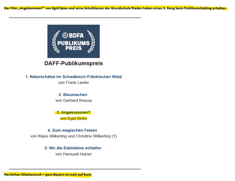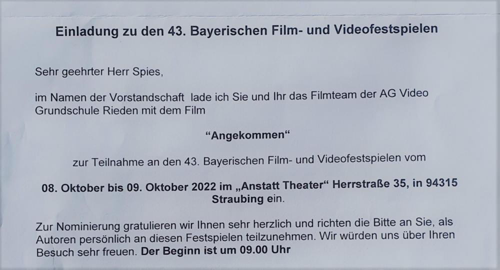 Tolle Erfolge: „Angekommen?“ erhält bei den Bayerischen-Amateur-Filmfestspielen 2022 in Starubing