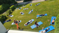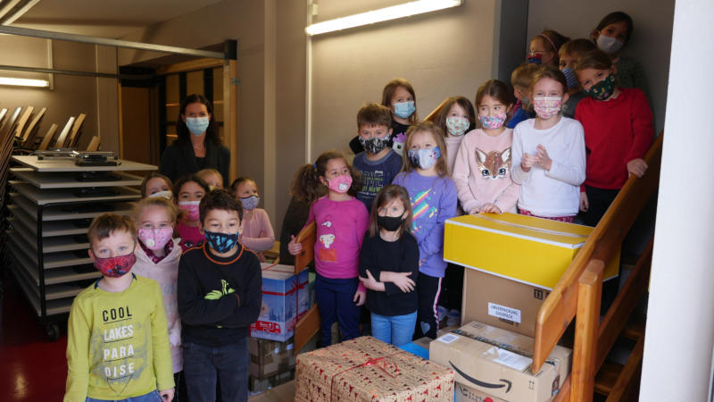 Quasi als Weihnachtsgeschenk spendierte der Elternbeirat der Schule für die Aula neue Sitzteppiche.